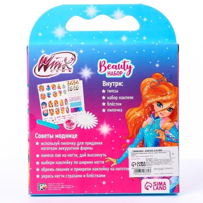 Наклейки для ногтей детские. Набор пилочка, типсы, блёстки, Винкс