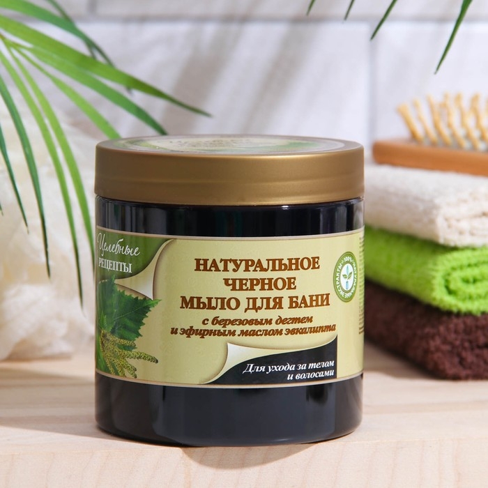 Важные ингредиенты натурального черного мыла для бани деготь и эфирное масло эвкалипта. Особо о дегте. В нем свыше 10 тысяч полезных веществ. Органические кислоты, фитонциды и смолистые вещества. Он является природным антисептиком, обладает противовоспалительным и противогрибковым действием, помогает коже регенерироваться, усиливает кровообращение и оказывает на нее омолаживающее действие, стимулирует рост волос. В обязанность эфирного масла эвкалипта входит улучшение микроциркуляции крови кожи головы и активизация роста волос, оказание дезинфицирующего действия, снятие зуда и воспаления кожного покрова.