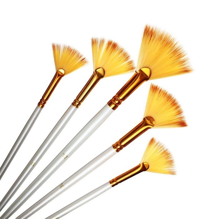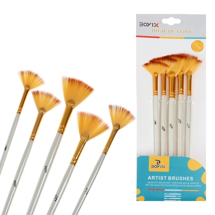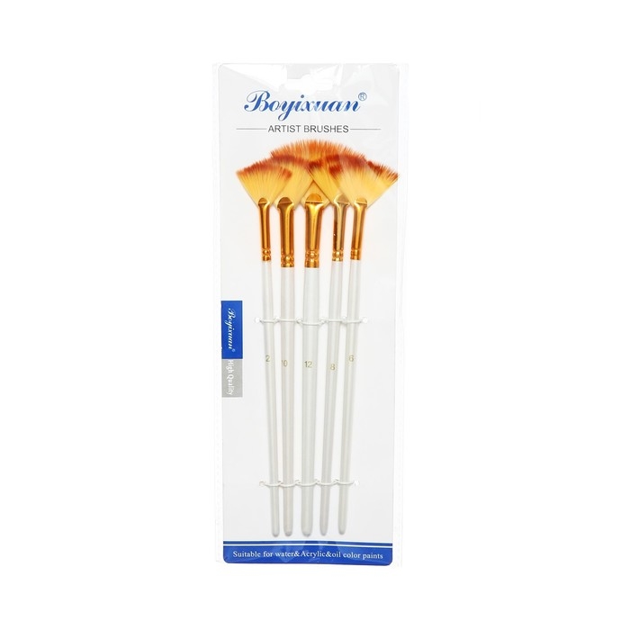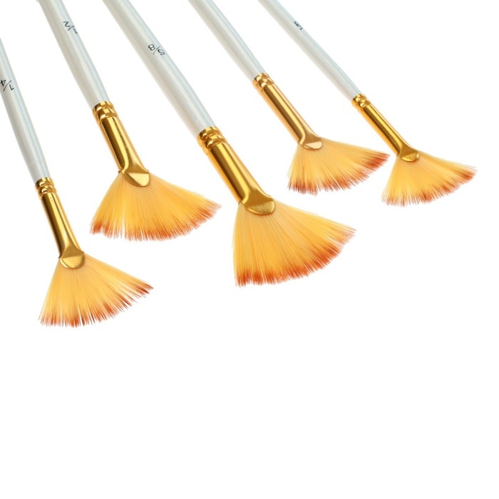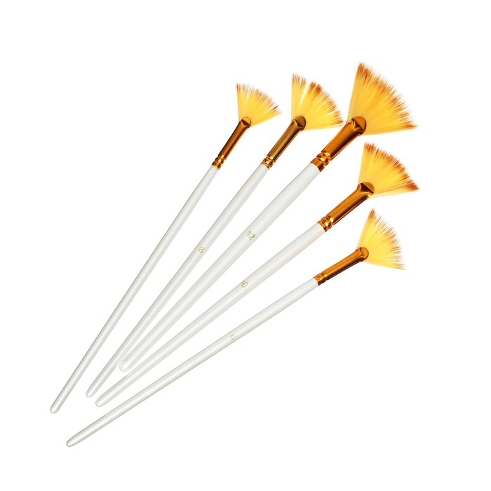 Набор кистей веерных, синтетика, плоские, в блистере, 5 штук