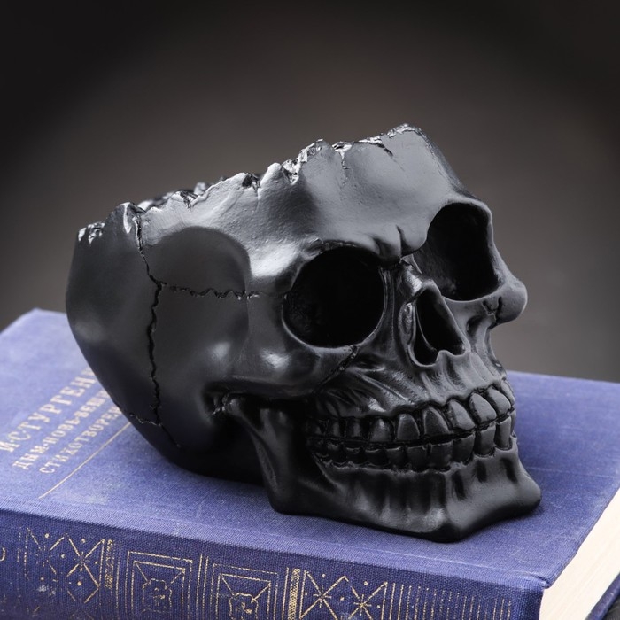 Свеча ароматическая в бетоне "Черный череп", 14х11 см, цитрус-эвкалипт