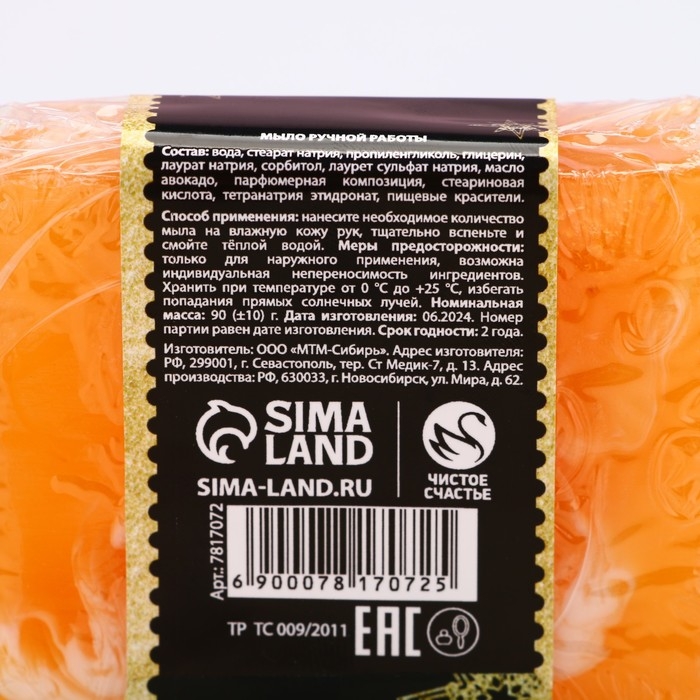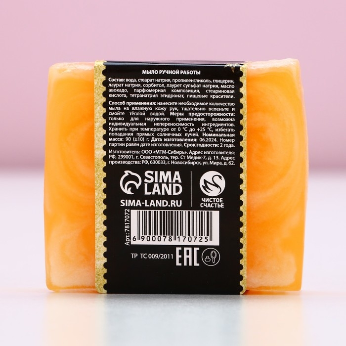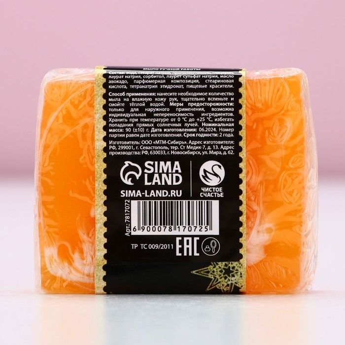 Мыло для рук ручной работы ЧИСТОЕ СЧАСТЬЕ, 90 г, аромат сладкого миндаля, Новый Год