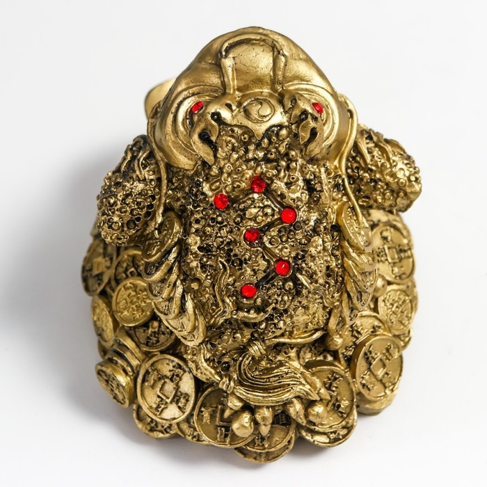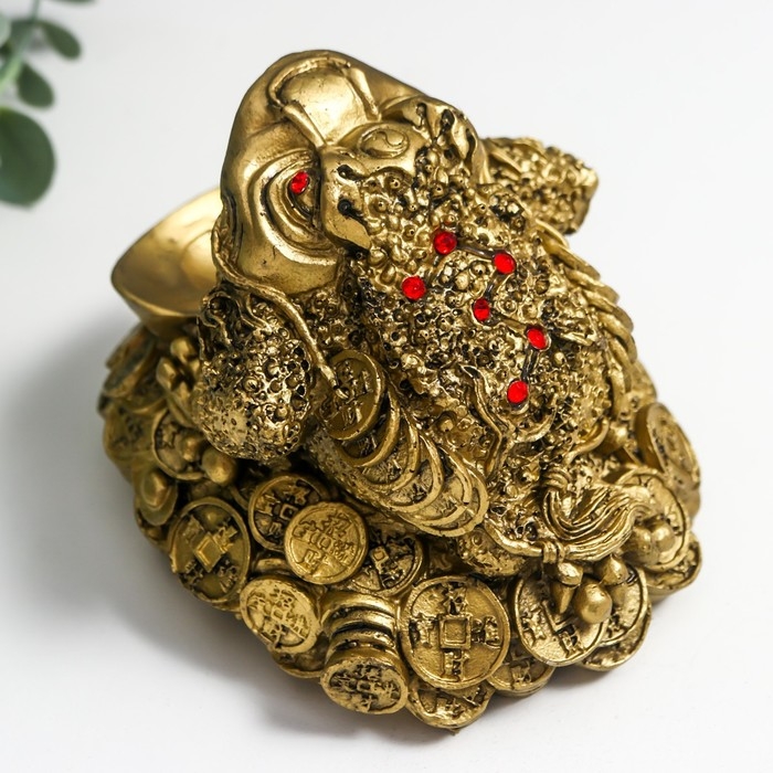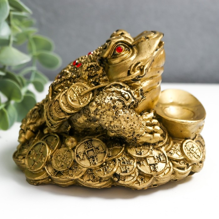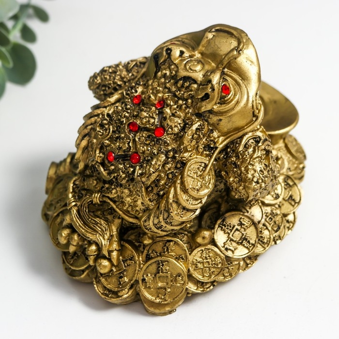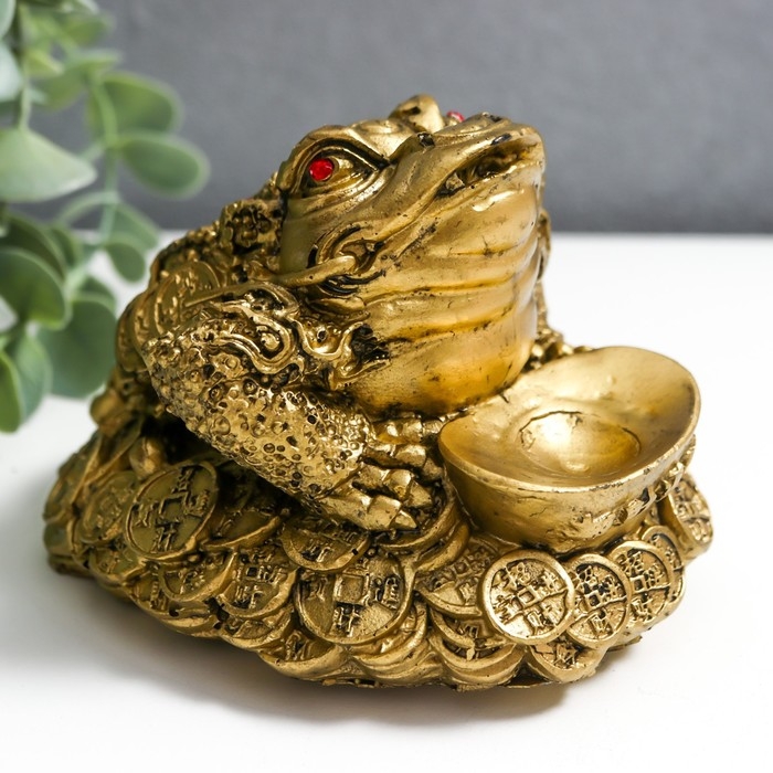Нэцке полистоун под бронзу "Денежная жаба на монетах и золотых слитках" 7,5х9х11 см