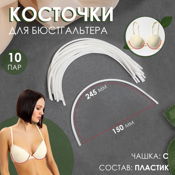 Косточки для бюстгальтера, 245 × 150 × 2,5 мм, чашка C, 10 пар