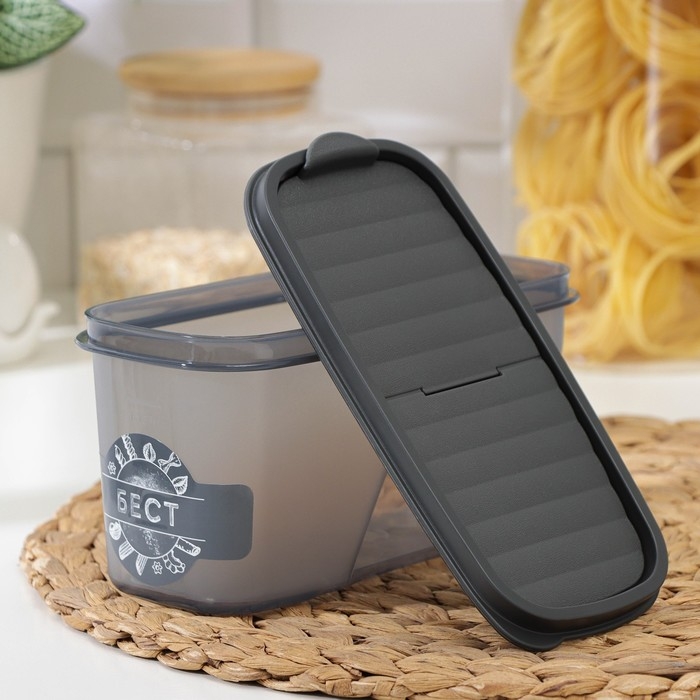 Ёмкость для сыпучих продуктов «Бест», 1 л, 9,5×19×9,5 см, прозрачный, крышка серая