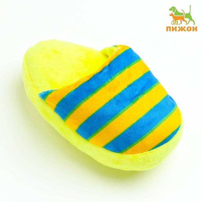 Игрушка для собак «Тапок», 15 см, жёлтая в полоску