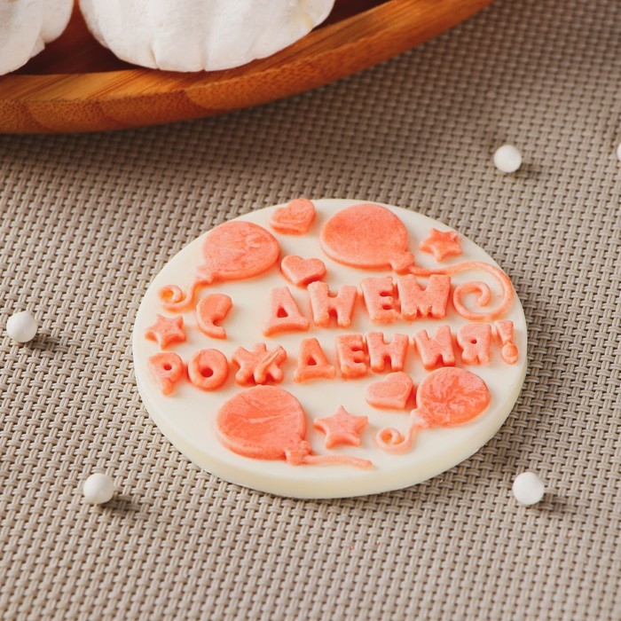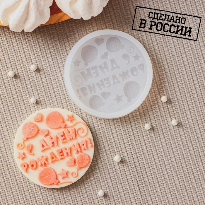 Силиконовая форма «С днём рождения», ячейка d=7 см, прозрачная