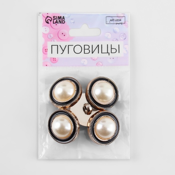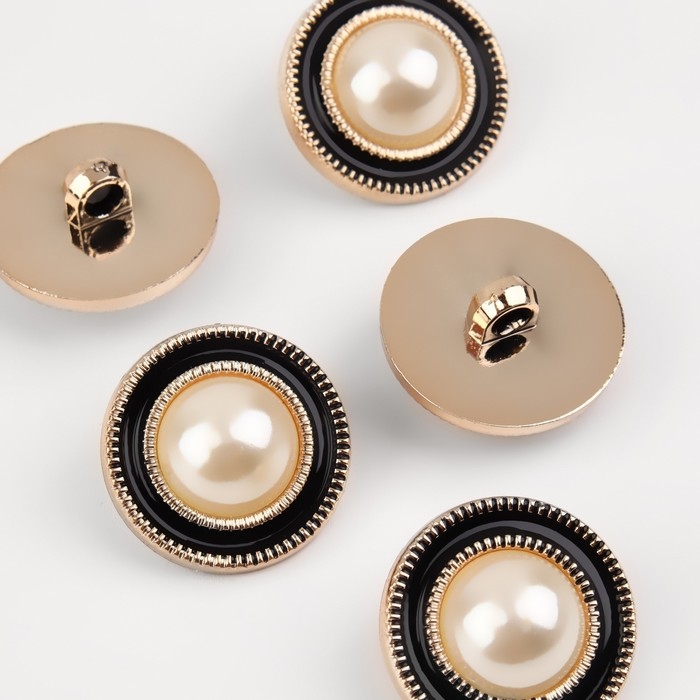 Набор пуговиц на ножке, d = 25 мм, 5 шт, цвет жемчужный/чёрный