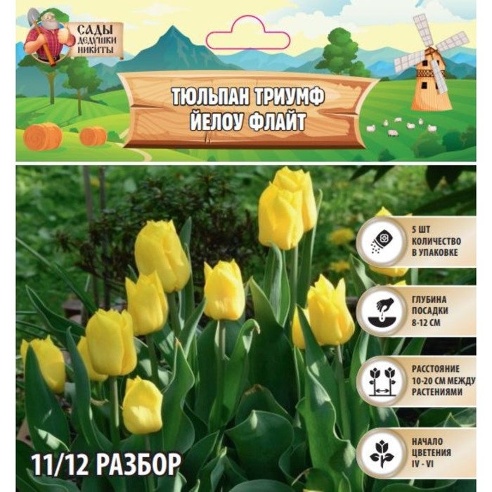 Тюльпан Триумф Йелоу Флайт, р-р 11/12, 5 шт, Осень 2024