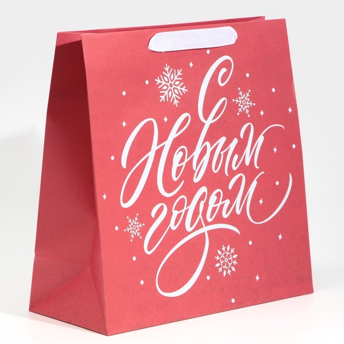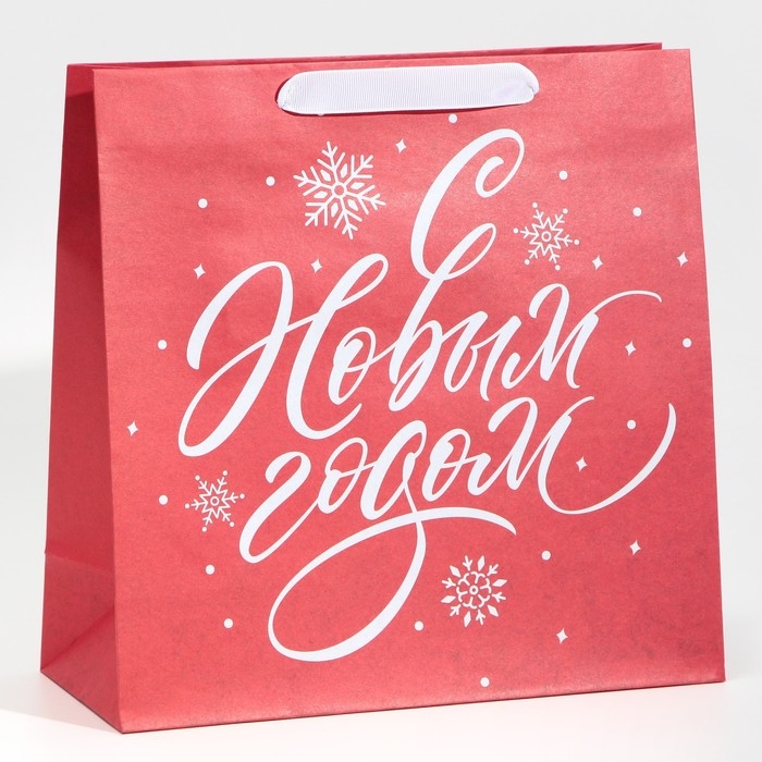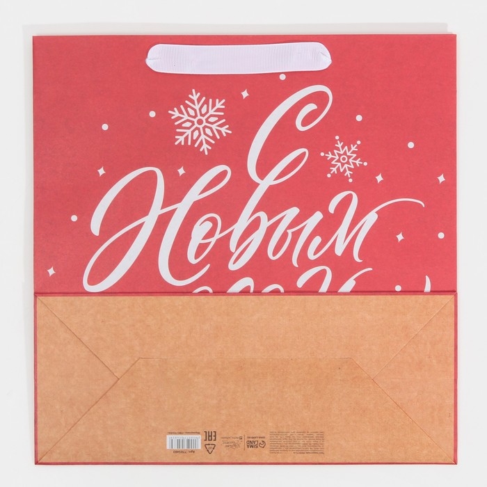 Пакет подарочный новогодний крафтовый квадратный «Новогодний», 30 х 30 х 12 см