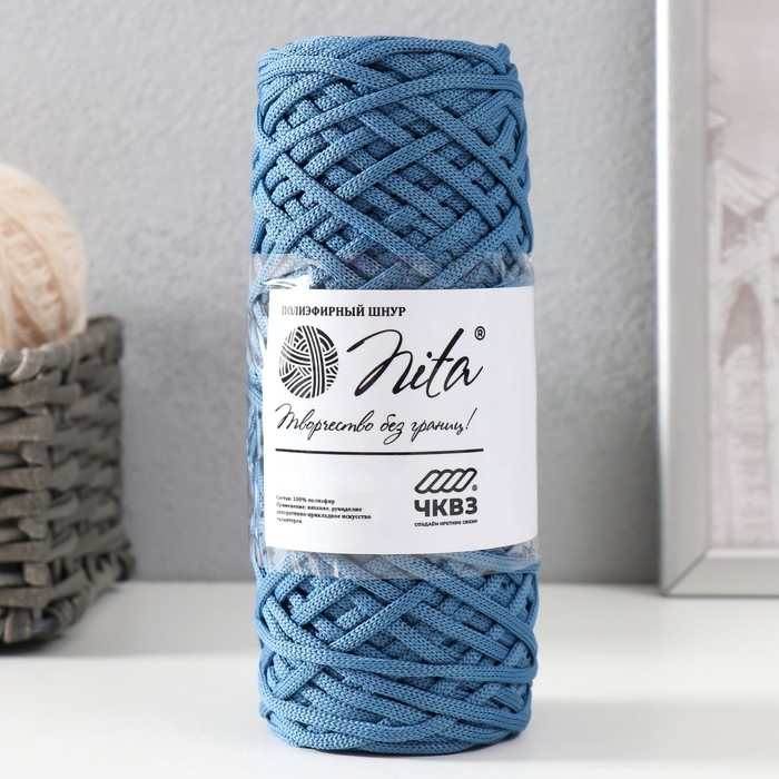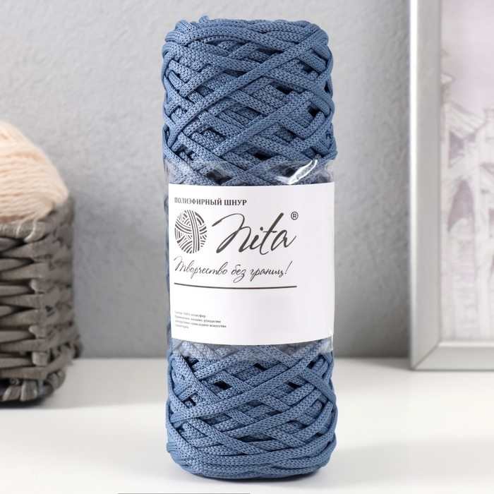Шнур для вязания 100% полиэфир, ширина 3 мм 100м (джинс)