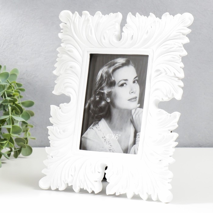 Фоторамка полистоун 10х15 см "Пышные листья" белая 26х20 см