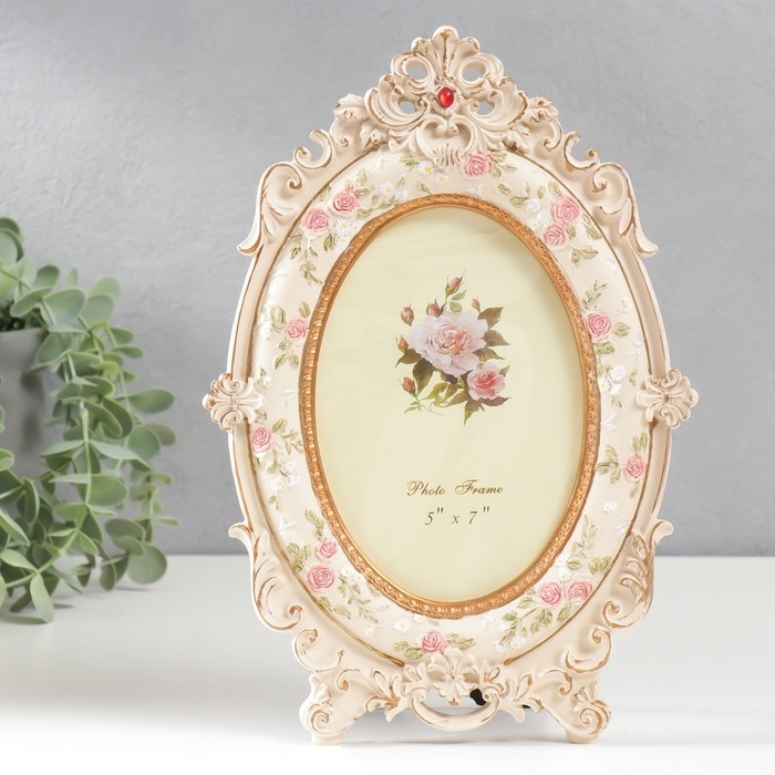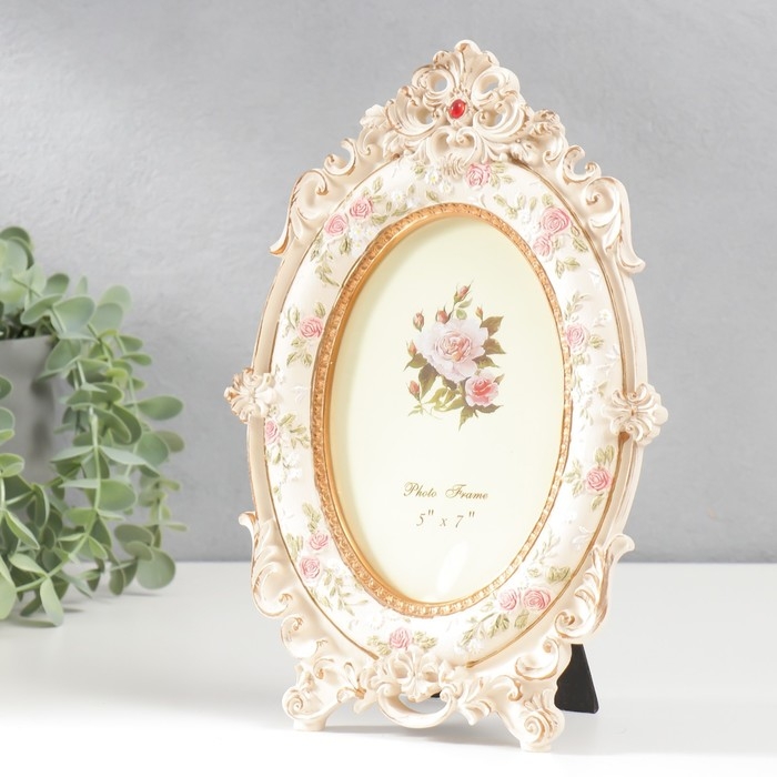 Фоторамка полистоун 13х18 см "Мелкие розочки" овальная, на ножках 28х19 см