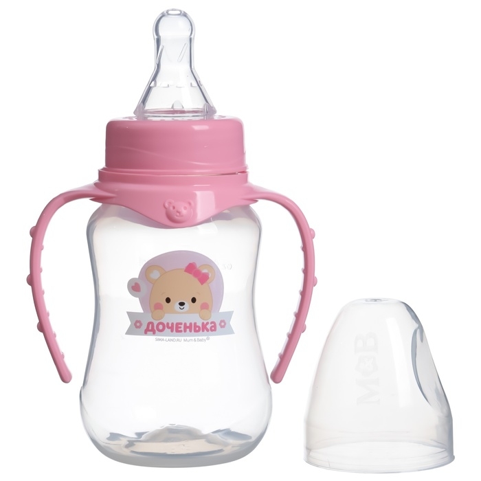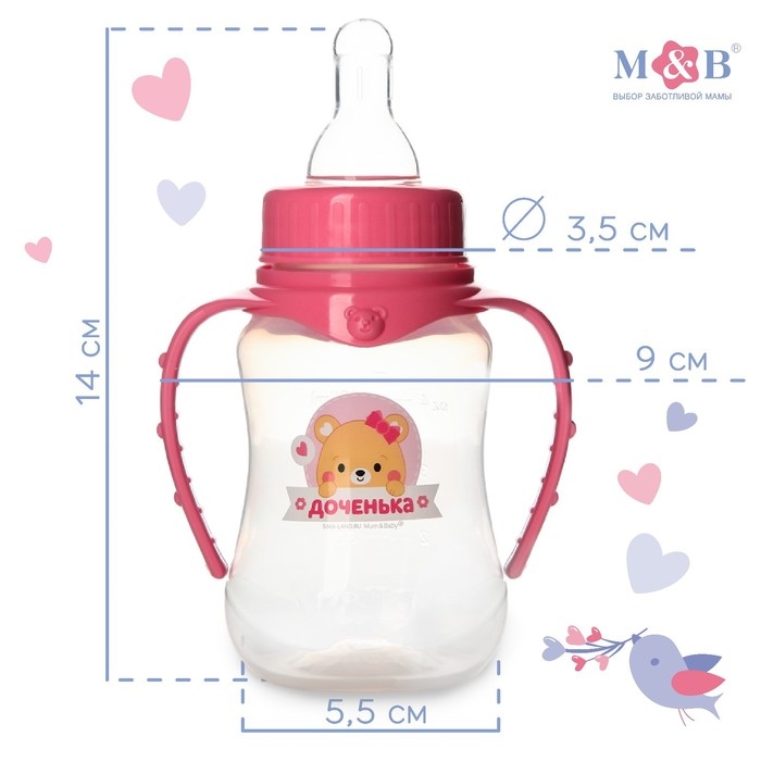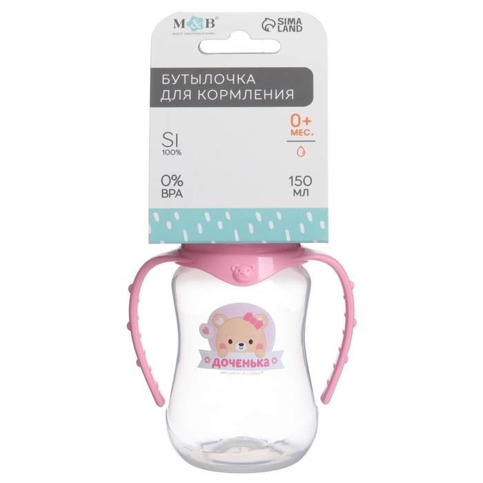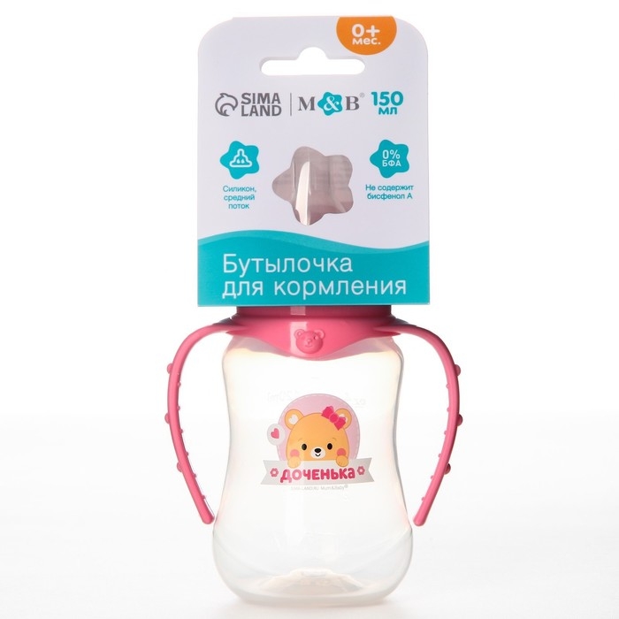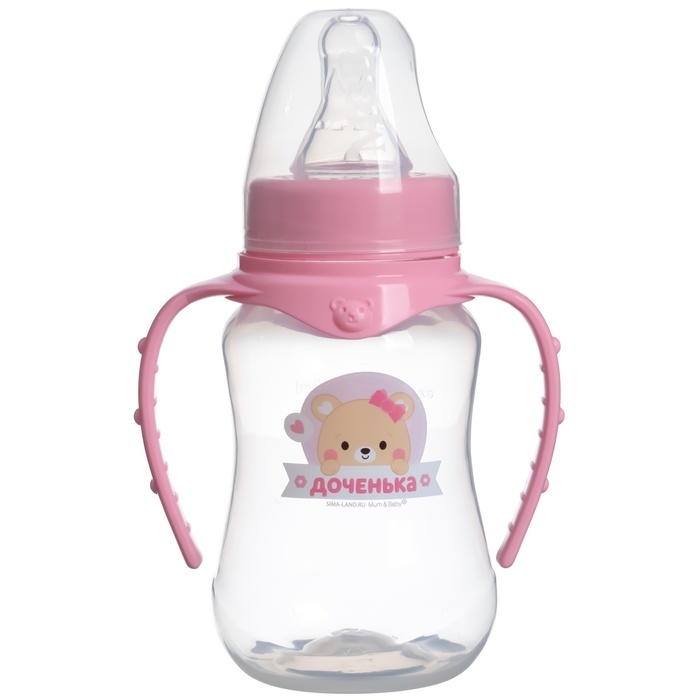 Бутылочка для кормления «Лучшая доченька», классическое горло, 150 мл., от 0 мес., приталенная, с ручками