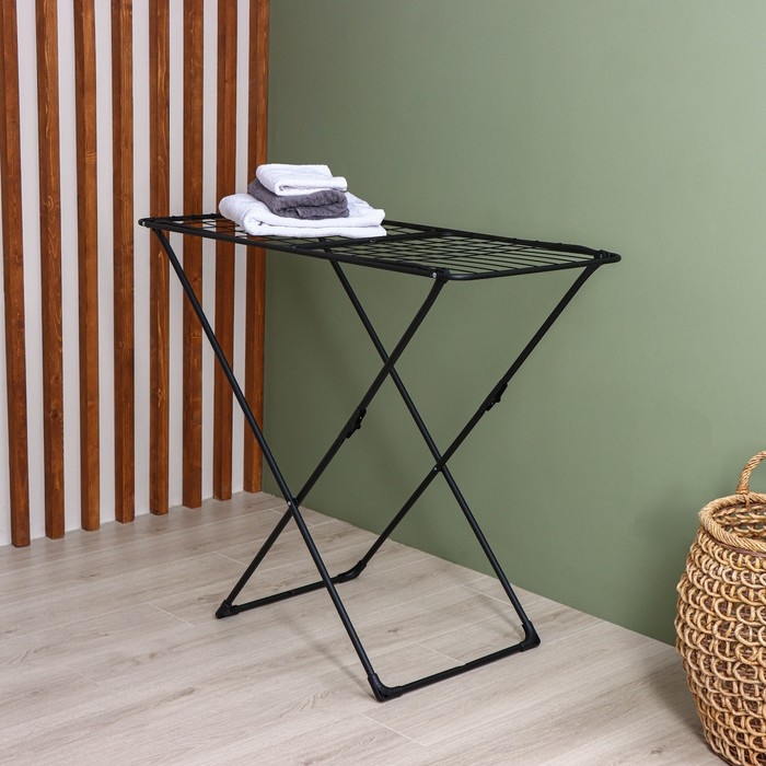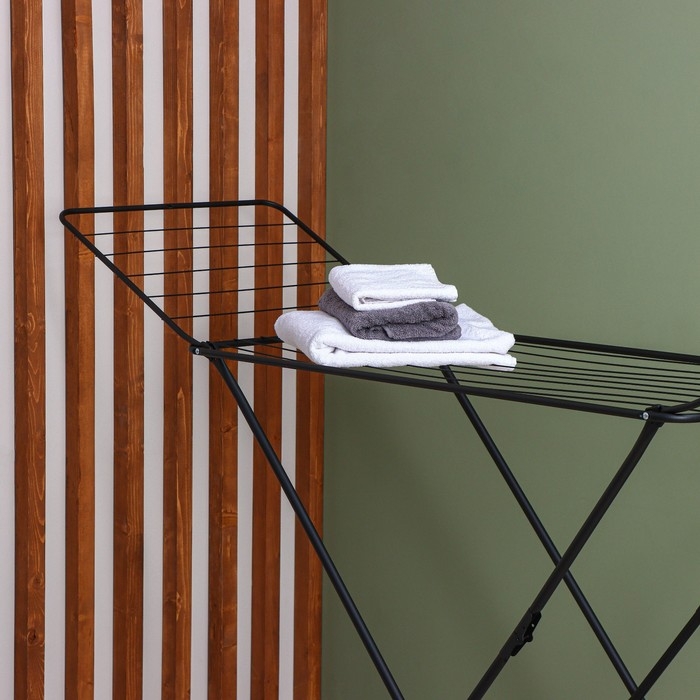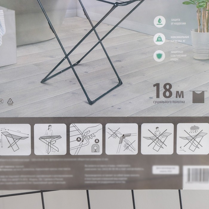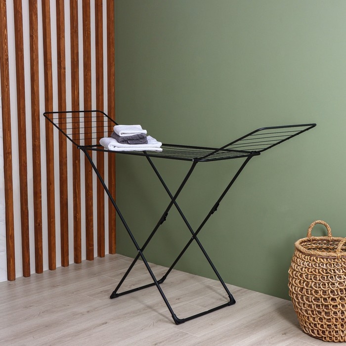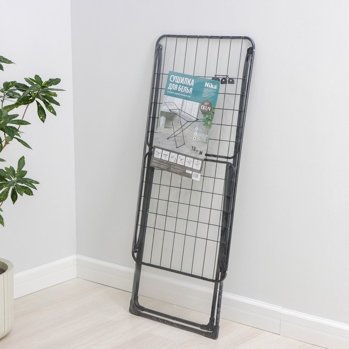 Сушилка для белья напольная складная, рабочая длина 18 м, высота от пола 95 см, ширина 54 см, чёрная