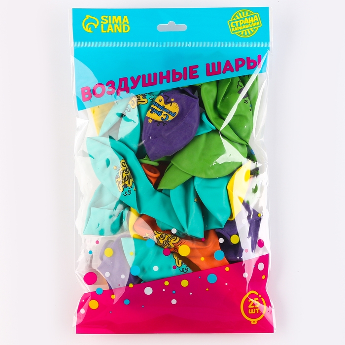 Воздушный шар латексный 12" «С Днём Рождения», яркий праздник, 25 шт.