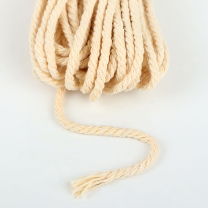 Нить для плетения, хлопок, d = 2,5 мм, 10 ± 0,5 м, цвет бежевый