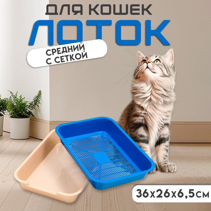 Кошачий туалет с сеткой представляет собой пластиковое корыто, в которое вставляется сетка. Наполнитель в этом варианте насыпается под сетку или вообще не используется.Преимущества лотка с сеткой: Экономичность - Лоток с решеткой сам по себе стоит недорого, а кроме того, хозяева могут экономить на наполнителе, так как даже если наполнитель используется, его для такой модели лотка требуется, как правило, меньше. Гигиеничность - Благодаря наличию сетки кошка не контактирует с грязным наполнителем, соответственно, не разносит его по всей квартире на своих лапах. Кроме того, коты обычно любят закапывать испражнения, разбрасывая при этом наполнитель. Если лоток небольшой, без высоких бортиков, то это может быть проблемой для хозяев, так как наполнитель нередко оказывается вокруг лотка, из-за чего приходится часто делать уборку. Модель лотка с сеткой полностью устраняет данную проблему.