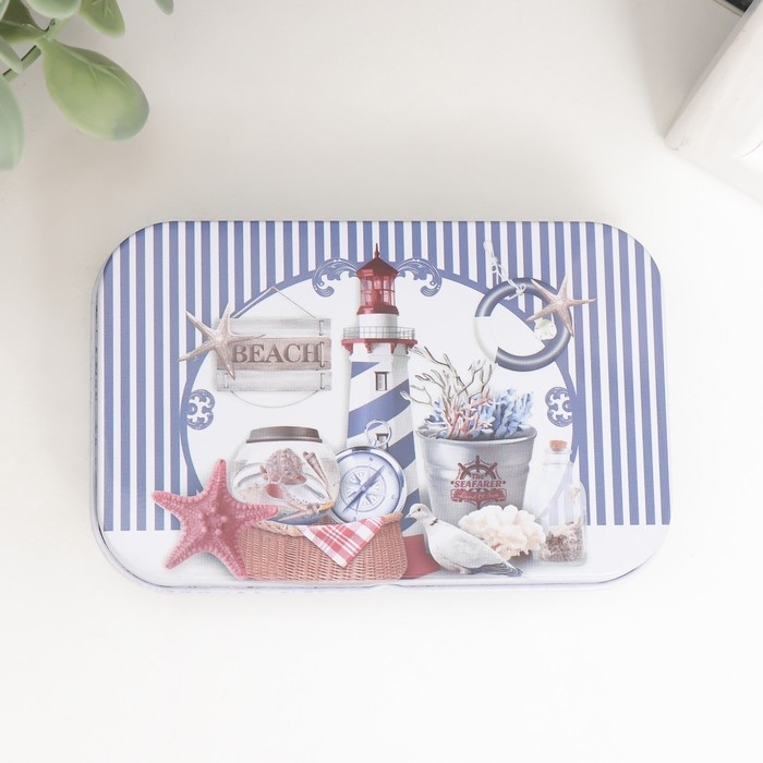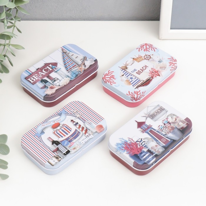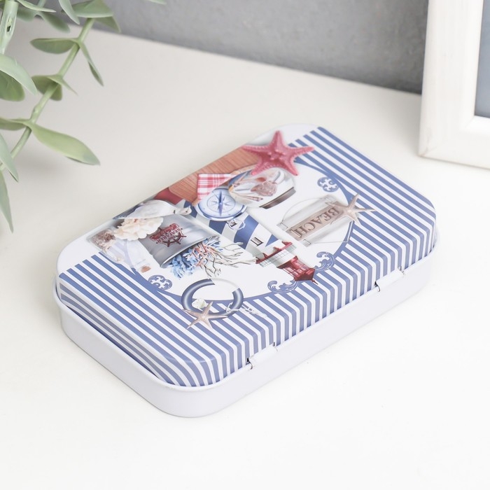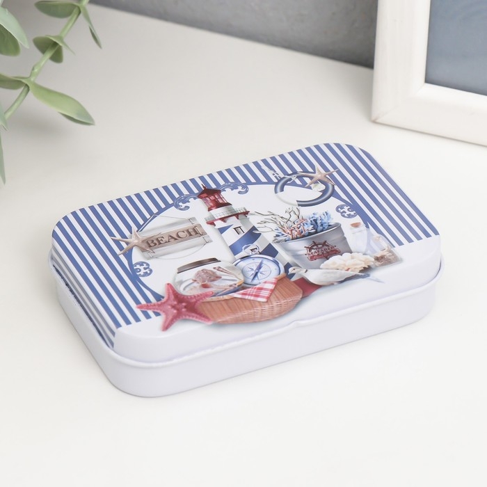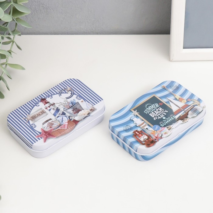 Шкатулка металл прямоугольная "Морская" МИКС 5,8х9,5х2,2 см