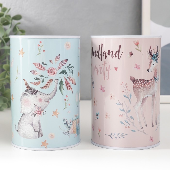 Копилка металл "Слоник/Олень в цветах" МИКС 8х8х12,5 см