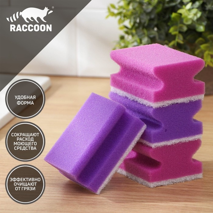 Набор губок для мытья посуды Raccoon «Фьюжн», 4 шт, 9,5×7×4,4 см, фиолетовый