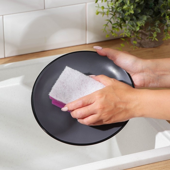 Губки выполнены из качественного поролона, что обеспечивает обильное пенообразование и помогает сократить расход моющего средства. С помощью абразивного слоя вы без труда отчистите даже сильные загрязнения.