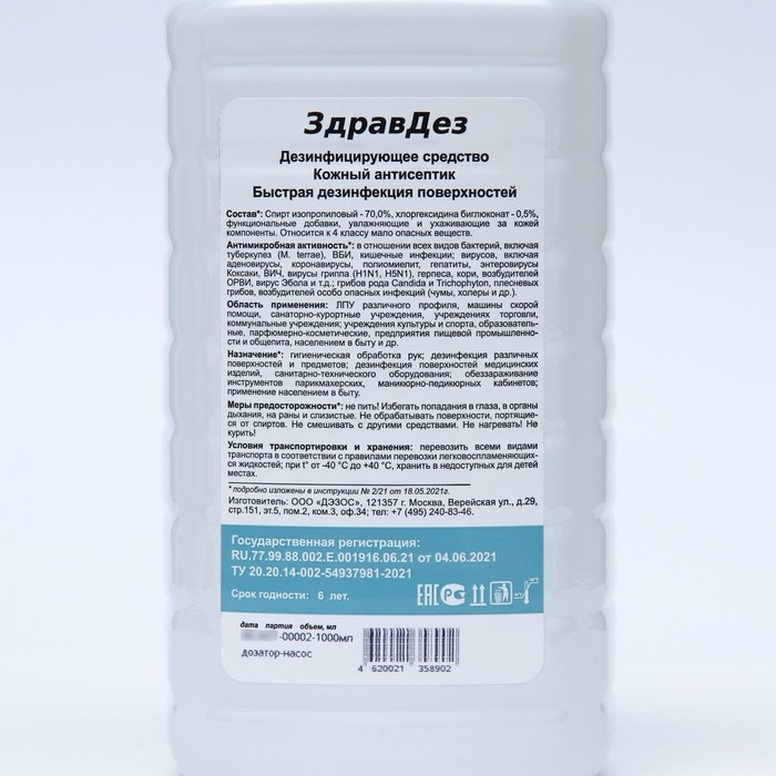 Антисептик "ЗдравДез", насос-дозатор, 1 л