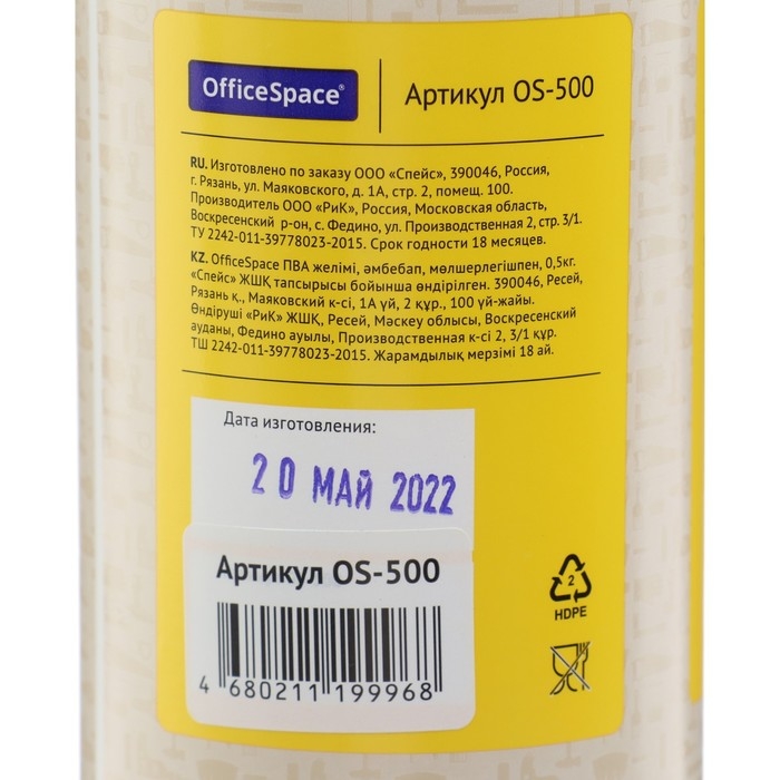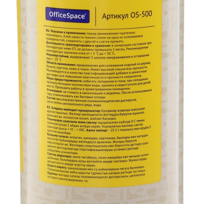 Клей ПВА 500г OfficeSpace, универсальный, с дозатором