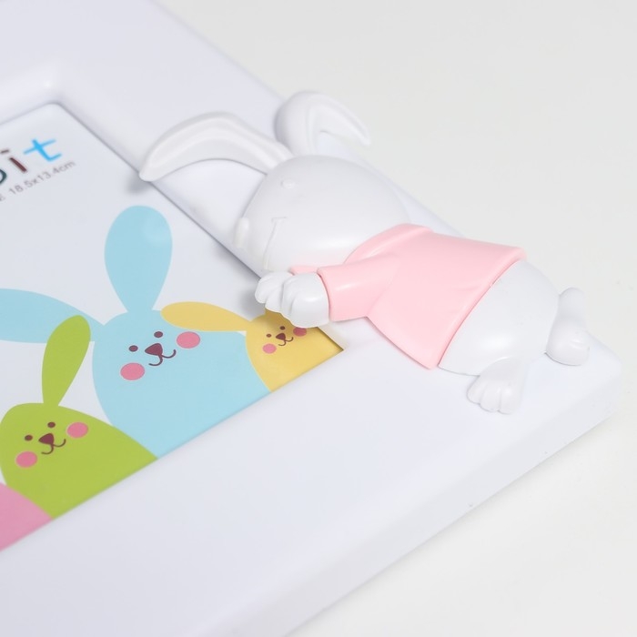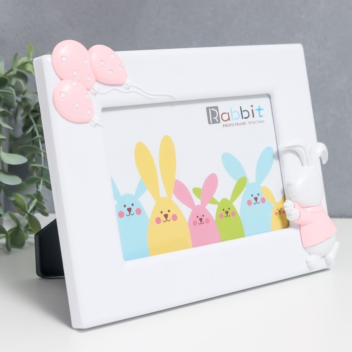 Фоторамка пластик 12х17 см "Зайчик с шариками" белая 24х19 см