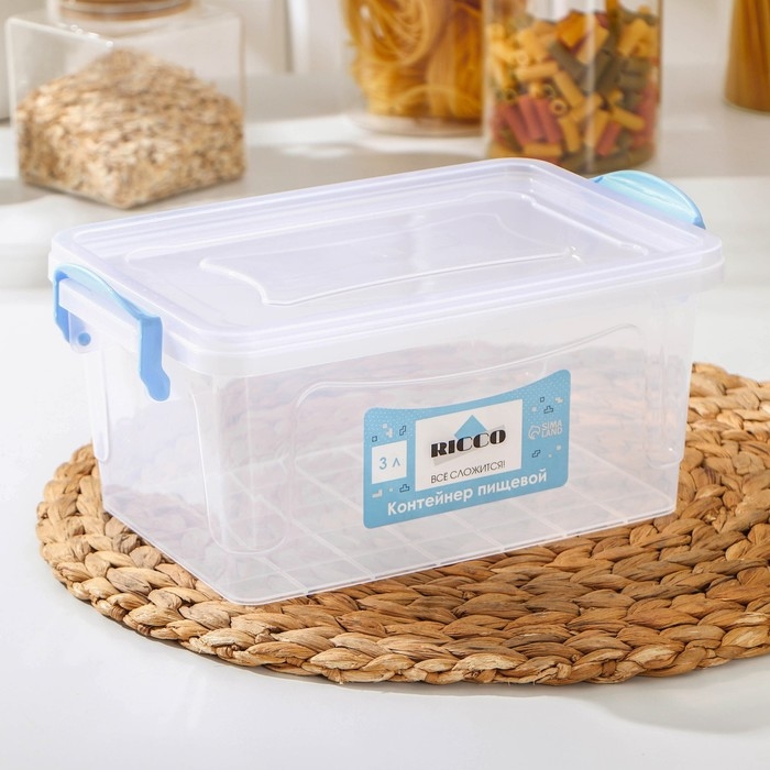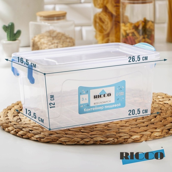 Контейнер пищевой RICCO, 3 л, 28×16×12 см, прямоугольный, прозрачный