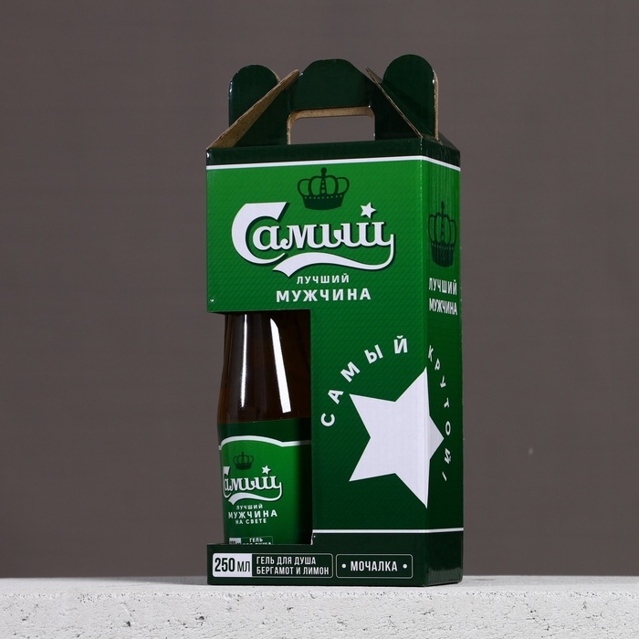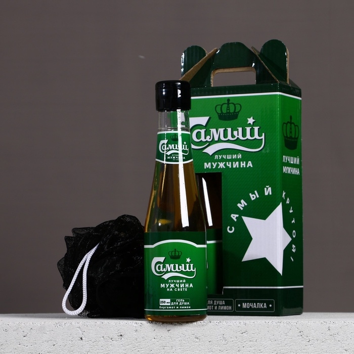 Подарочный набор мужской, гель для душа во флаконе пиво 250 мл и мочалка для тела, Новый Год