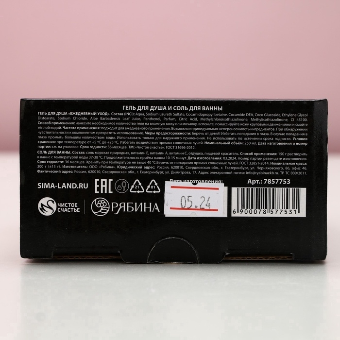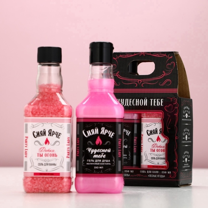 Подарочный набор ЧИСТОЕ СЧАСТЬЕ PARTY LADY: гель для душа виски 250 мл и соль для ванны 300 г