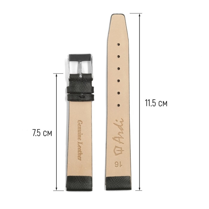 Ремешок для часов, 16 мм, запряжник 75 мм, горт 115 мм, натуральная кожа, черный