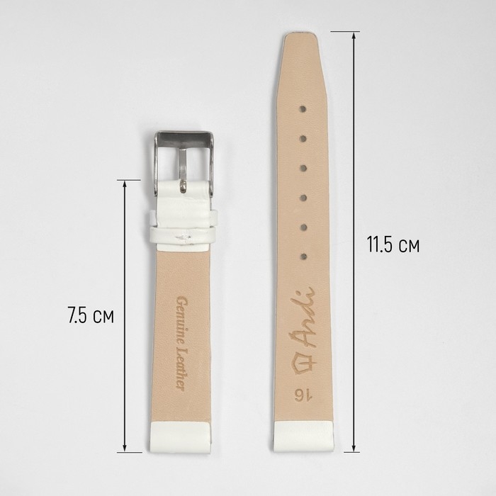 Ремешок для часов, 16 мм, запряжник 75 мм, горт 115 мм, натуральная кожа, белый
