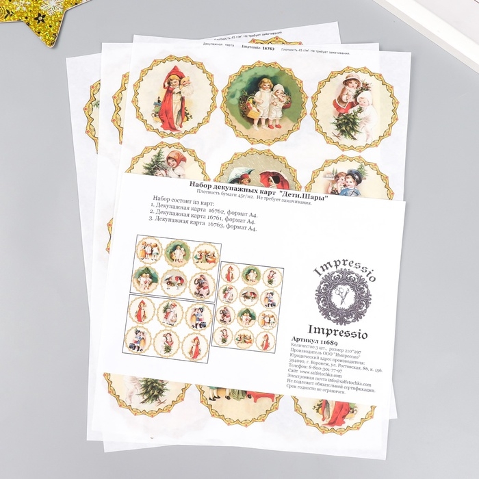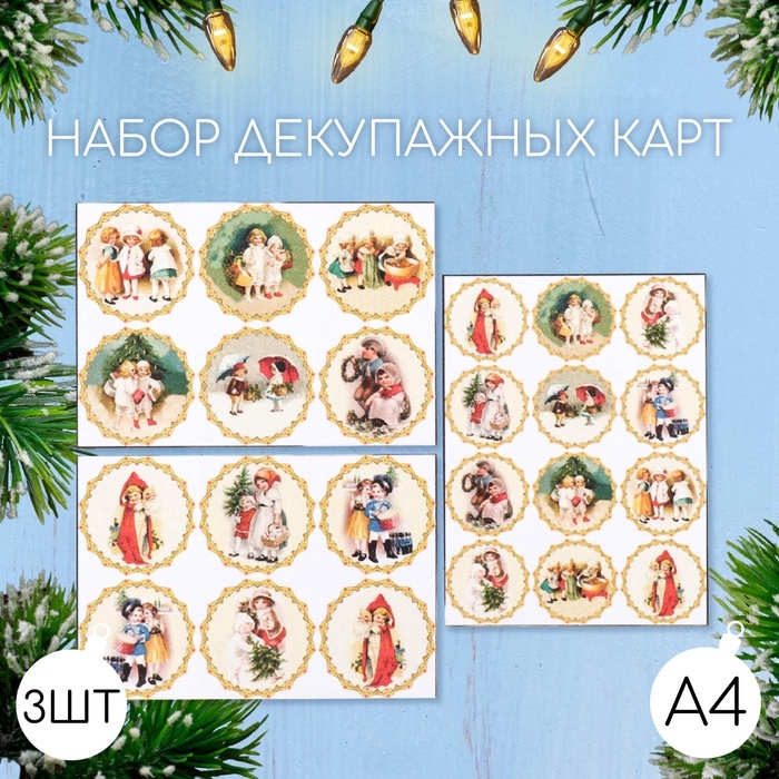 Набор декупажных карт 3 шт "Дети. Шары" плотность 45г/м2, формат А4