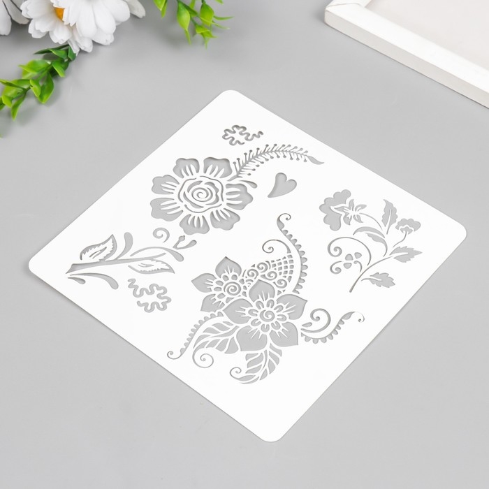 Трафарет пластиковый "Мехенди.Цветочки" 15х15 см