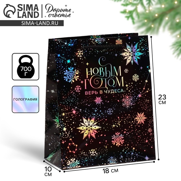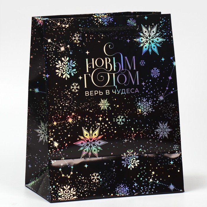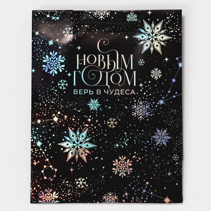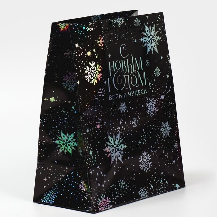 Пакет голографический «Танец снежинок», 18 х 23 х 10 см