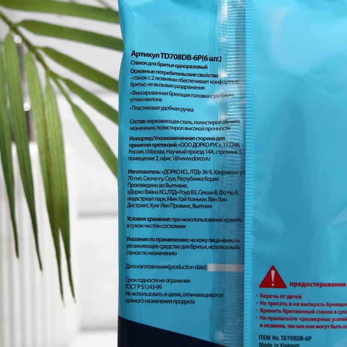 Станок для бритья одноразовый Dorco TD 708, 2 лезвия, 5+1 шт.