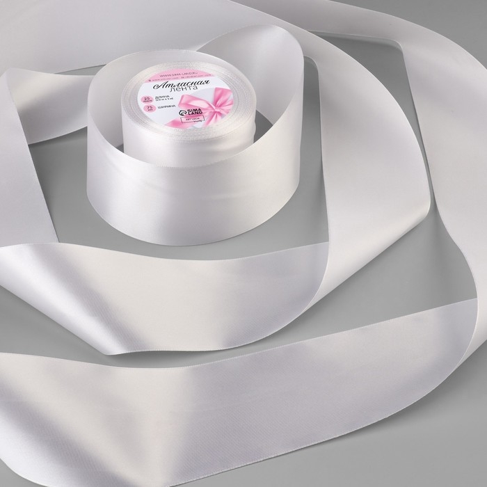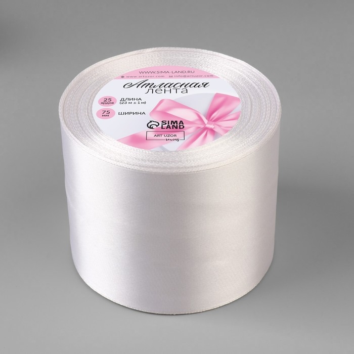 Лента атласная, 75 мм × 23 ± 1 м, цвет белый №01