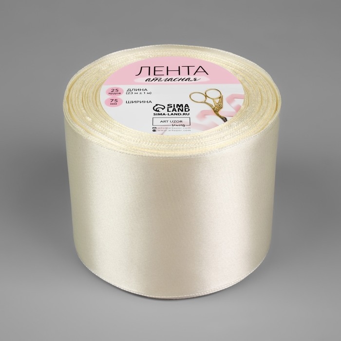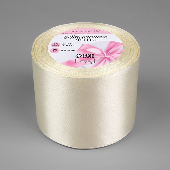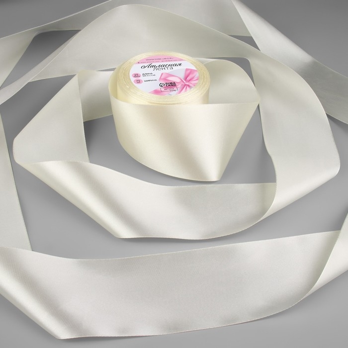 Лента атласная, 75 мм × 23 ± 1 м, цвет сливочный №02