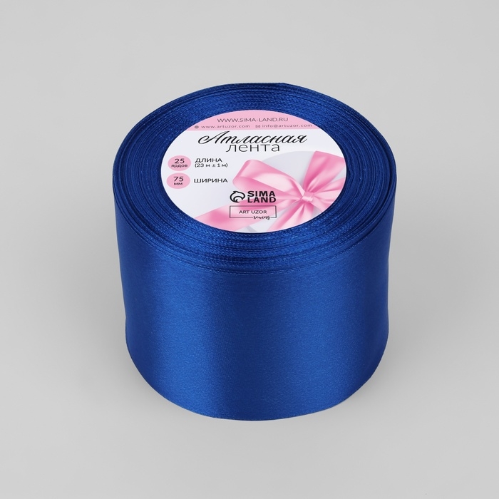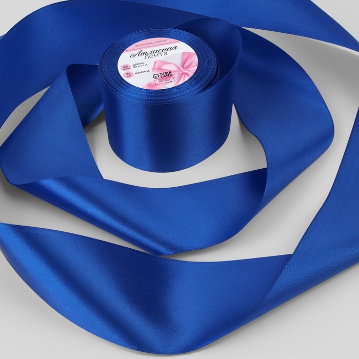 Лента атласная, 75 мм × 23 ± 1 м, цвет синий №40