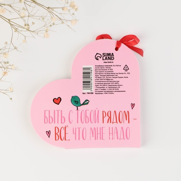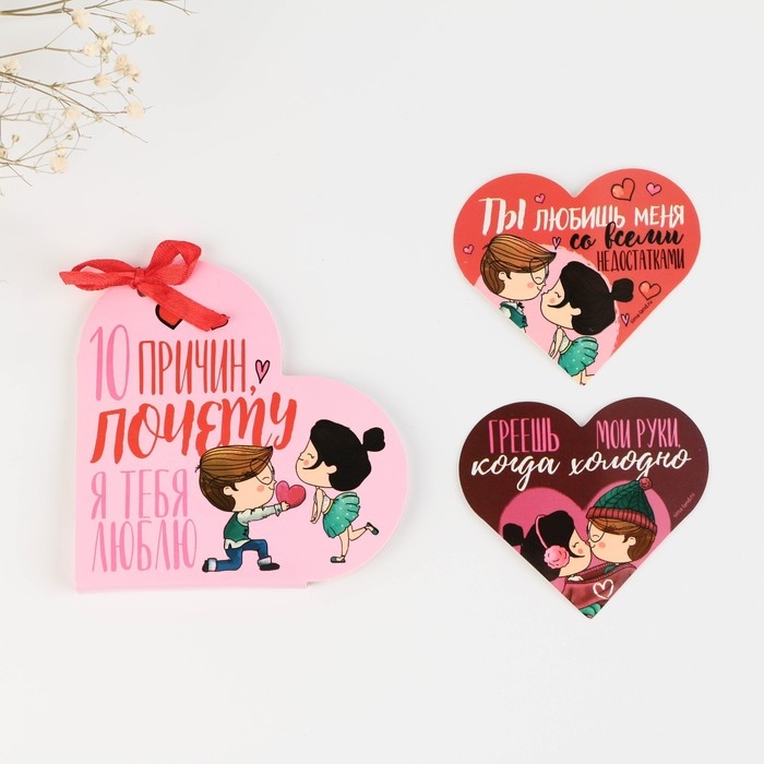 Валентинка открытка на 14 февраля «Люблю тебя за то, что...», 10 шт, 12 х 10 см
