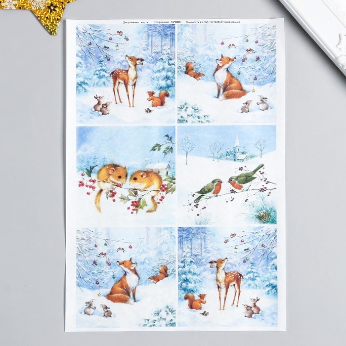 Декупажная карта "Звери в лесу" плотность 45г/м2 формат А4