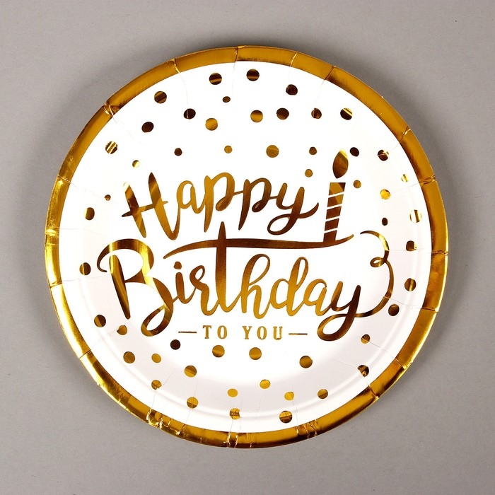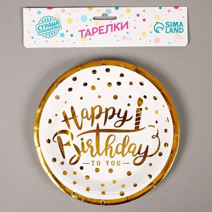 Тарелка одноразовая бумажная «Happy birthday», набор 6 шт., 18 см