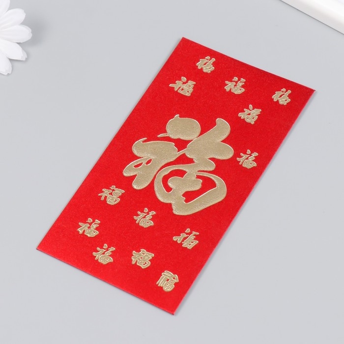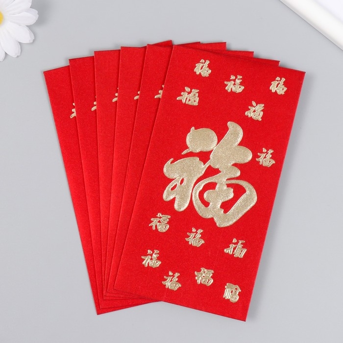 Конверт денежный бумага "Счастье" набор 6 шт красный с золотом 9х17 см