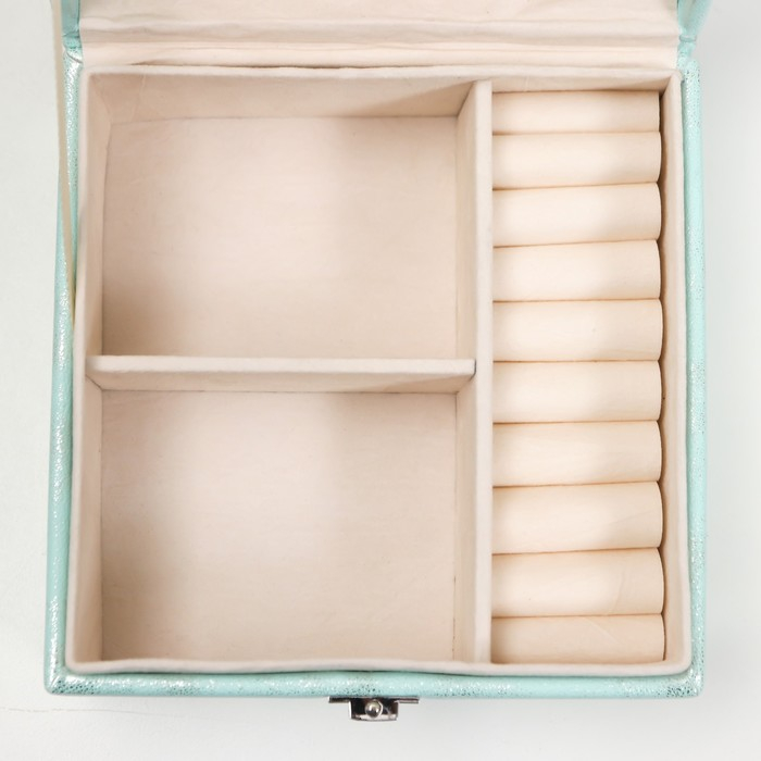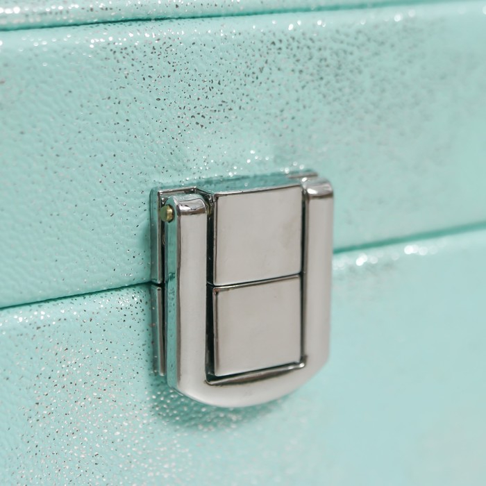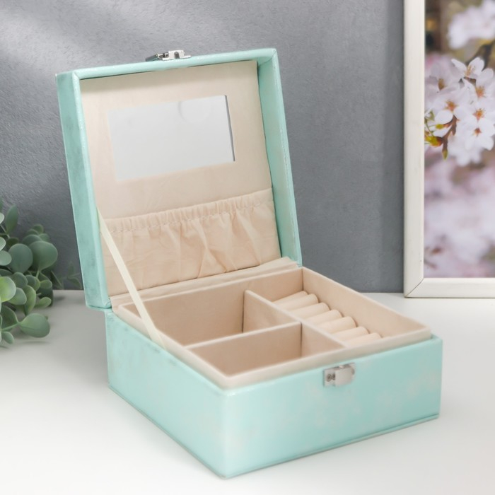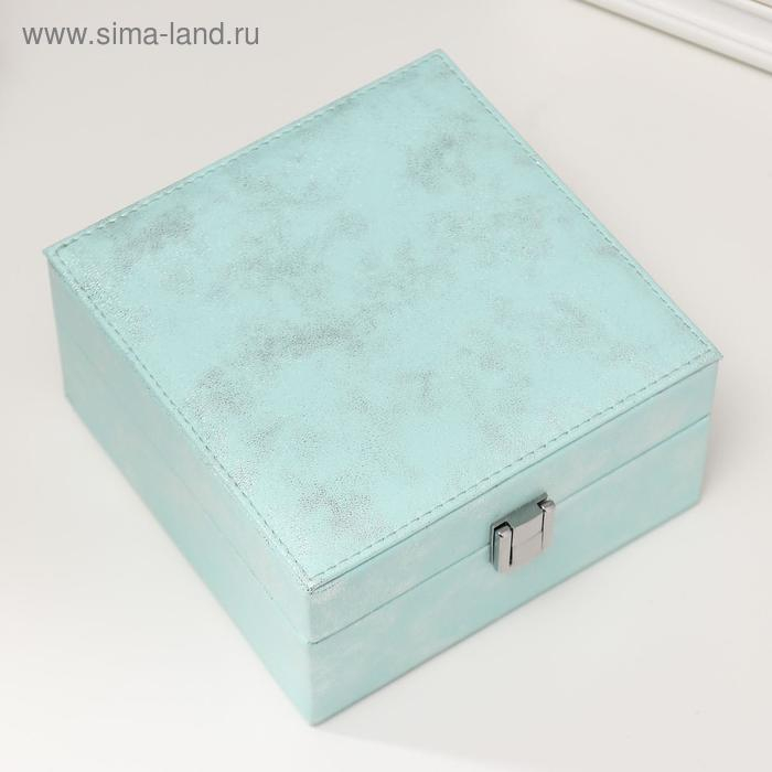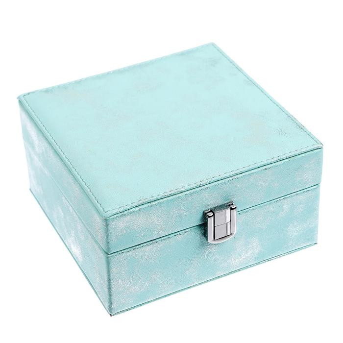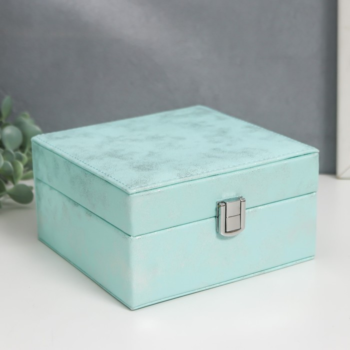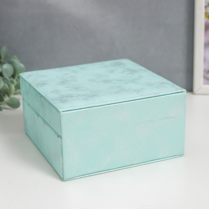Шкатулка кожзам для украшений "Серебряный блеск на голубом" 8х14,5х14,5 см