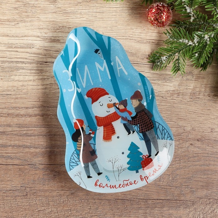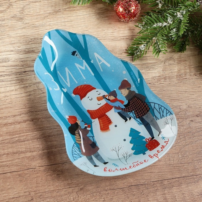 Тарелка стеклянная новогодняя Дорого внимание «Зима», 13,4 х 20,5 см, стекло