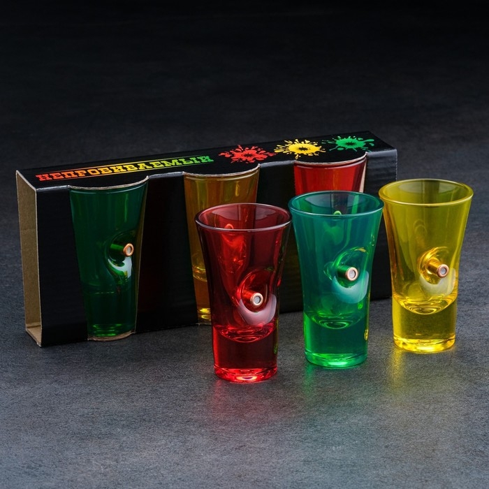 Стопки "Непробиваемые. Цветные", 3 шт., с пулей