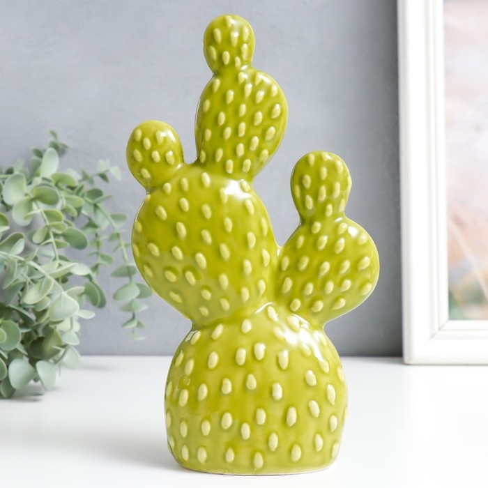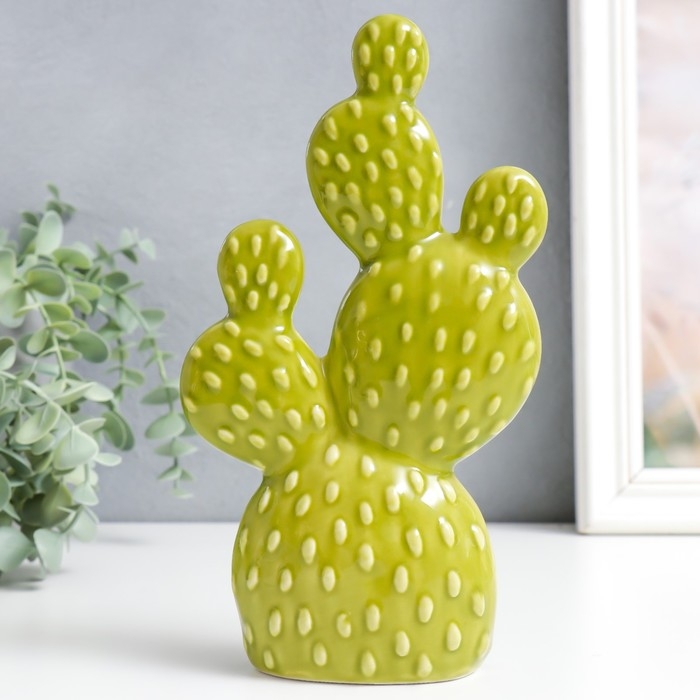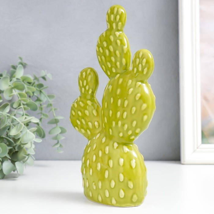 Сувенир керамика "Кактус Опунция" зелёный 5х12,5х22 см