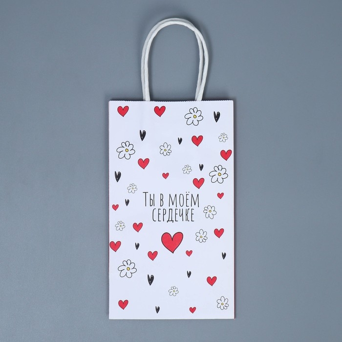 Пакет подарочный крафтовый, упаковка, «Ты в моём сердечке», 12 х 21 х 9 см