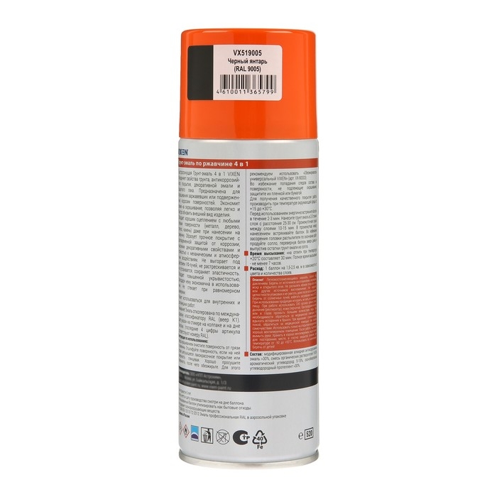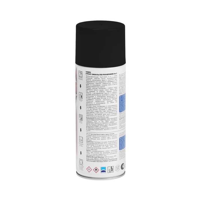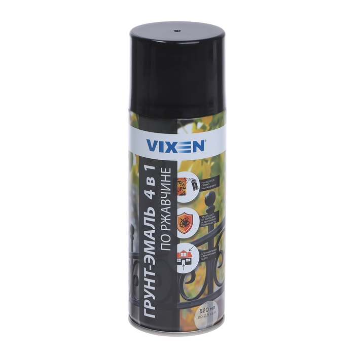 Грунт-эмаль по ржавчине 4 в 1 VIXEN, черный янтарь RAL 9005, аэрозоль 520 мл VX-519005